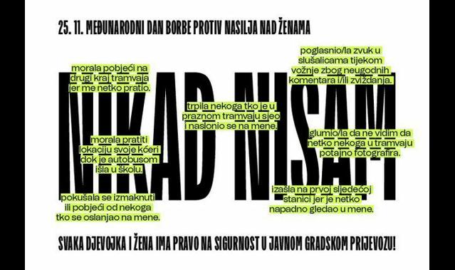 Povodom Međunarodnog dana borbe protiv nasilja nad ženama, koji se obilježava 25. studenog, Grad Zagreb uz podršku Zagrebačkog električnog tramvaja (ZET) i Policijske uprave zagrebačke provodi javnu kampanju podizanja svijesti o sigurnosti žena i djevojaka u javnom gradskom prijevozu.
