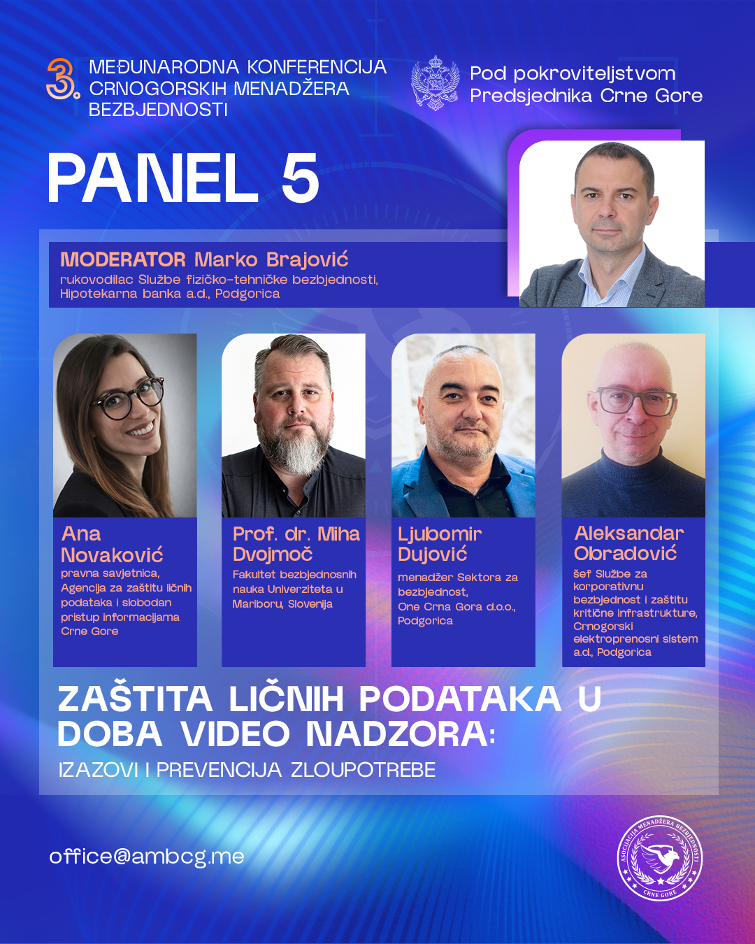 „Kako bismo olakšali organizaciju i osigurali planirani tijek događaja, na našoj web stranici https://ambcg.me/konferencija-budva-2026/ su navedene sve informacije o konferenciji“, poručuju crnogorski menadžeri sigurnosti okupljeni oko predsjednika Dragana Radulovića.