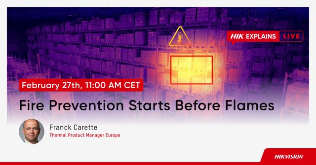 U novom webinaru "Prije prvog plamena", Hikvision će istraži kako se industrijski požari mogu spriječiti - s naglaskom na tehnologije termovizijskog snimanja za rano otkrivanje, dizajn sustava vođen prevencijom i praktična razmatranja za industrijska okruženja.