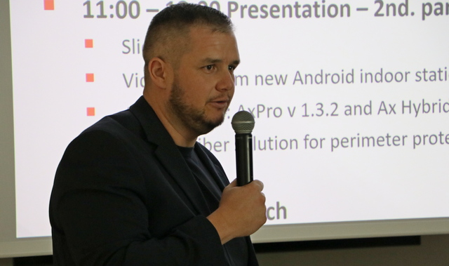 Pred okupljenim slušateljima prezentacije je održao Elvis Ferhatović, pretprodajni inženjer kompanije za tržište Adria regije osvrnuvši se na početku na novitete iz područja CCTV-a (12/16Mpix kamere serije 2, 12/16 panoramska kamera 180dgr., Mini PTRZ kamere, kVPro NVR serija s Acuseekom, AOV kamere), da bi nakon toga slušateljima prezentirao vijesti i softver koji nisu vezani za CCTV (klizna vrata; nova Android unutarnja stanica za videointerfon KH9 i KC9; vijesti o alarmima: AxPro v 1.3.2 i Ax Hybrid Pro G2 V2.1.2; rješenje s optičkim vlaknima za zaštitu perimetra i mjerenje temperature; softver).