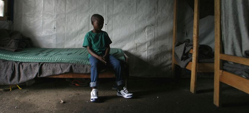 © UNICEF/Roger LeMoyne Jedanaestogodišnji dječak sjedi u spavaonici reintegracijskog centra za nedavno demobiliziranu djecu vojnike u Gomi, DR Kongo.