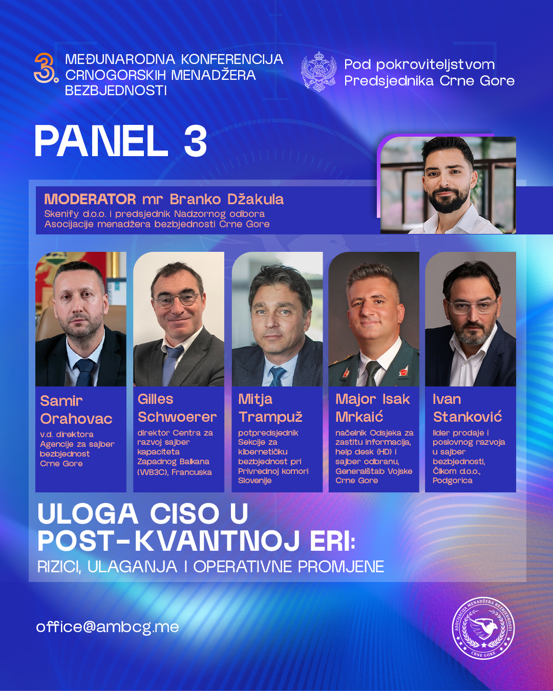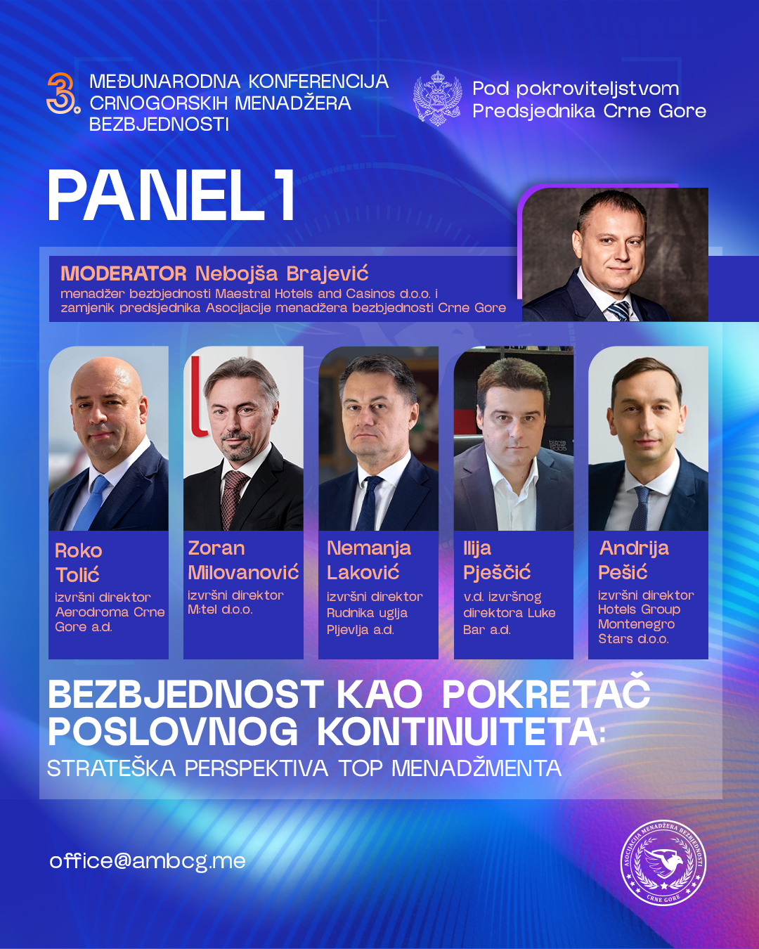 „Kako bismo olakšali organizaciju i osigurali planirani tijek događaja, na našoj web stranici https://ambcg.me/konferencija-budva-2026/ su navedene sve informacije o konferenciji“, poručuju crnogorski menadžeri sigurnosti okupljeni oko predsjednika Dragana Radulovića.