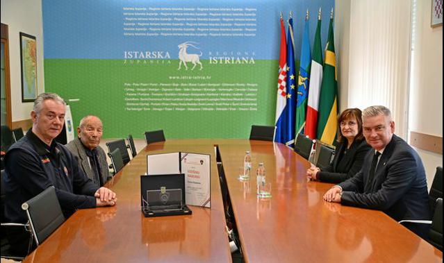 U sjedištu Istarske županije u Puli, istarski župan Boris Miletić primio je Denisa Stipanova, zamjenika načelnice Stožera civilne zaštite Istarske županije i voditelja Službe civilne zaštite Istarske županije, povodom dodjele godišnje nagrade u području sustava civilne zaštite za 2026. godinu